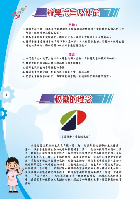 三,培育及發揮學生的創意能力。本校以色彩代替文字作為校徽的主體,是因