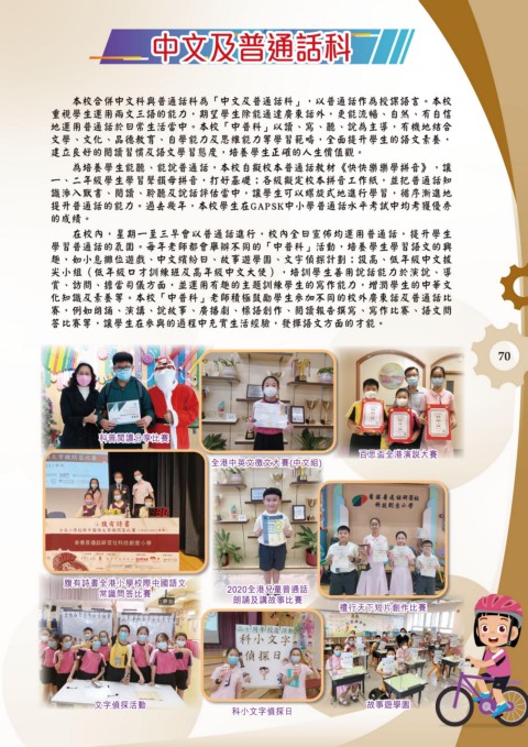提升普通話的能力。過去幾年,本校學生在GAPSK中小學普通話水平考試中均考獲優秀