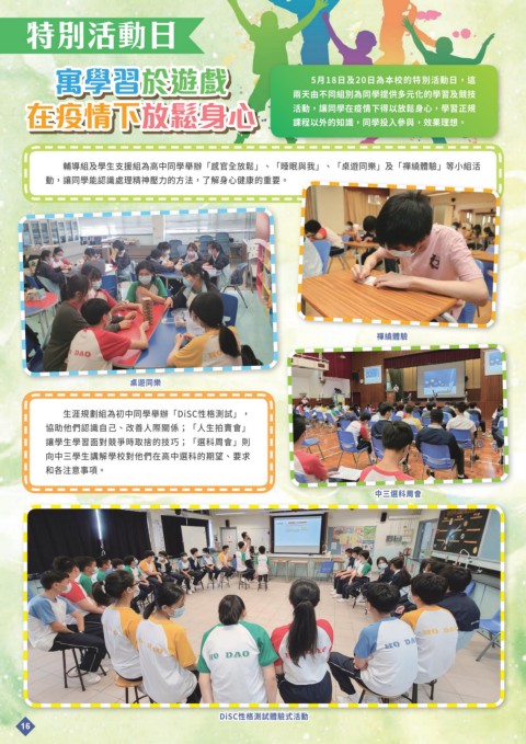 活動,讓同學在疫情下得以放鬆身心,學習正規