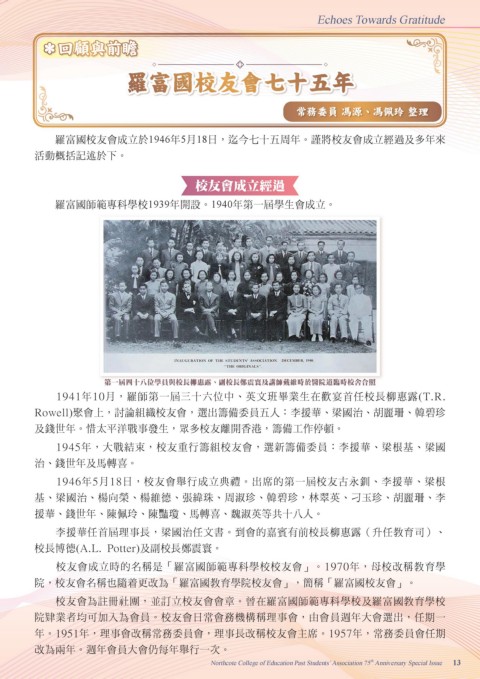 Northcote College of Education Past Students’ Association 75 Anniversary Special Issue 13