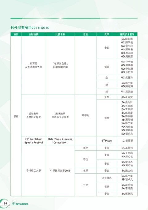 項目 主辦機構 比賽名稱 組別 獎項 得獎學生名單