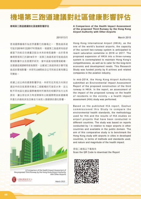 機場第三跑道建議對社區健康影響評估 A Comparison of the Health Impact Assessment
