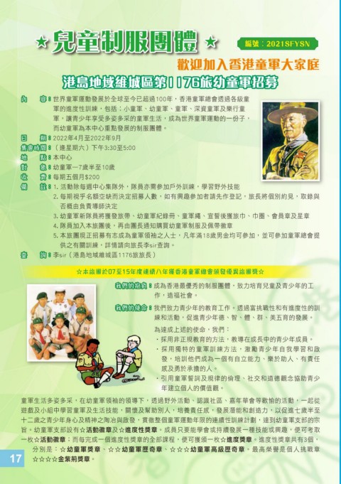 內 容:世界童軍運動發展於全球至今已超過100年,香港童軍總會透過各級童