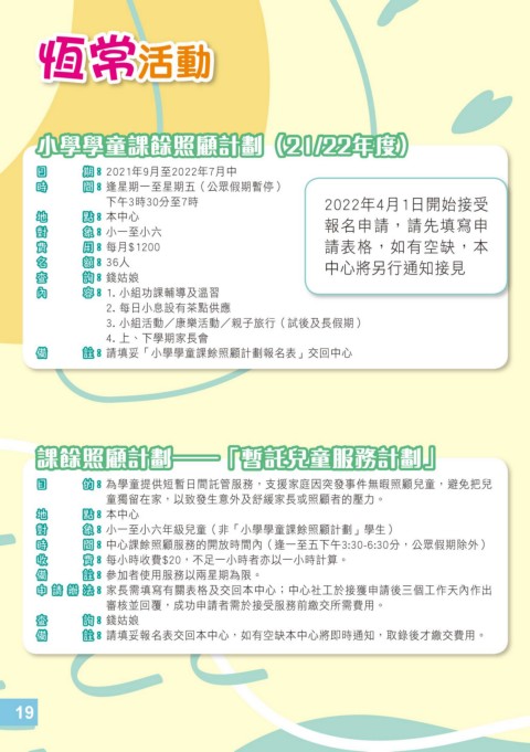 小學學童課餘照顧計劃(21/22年度)