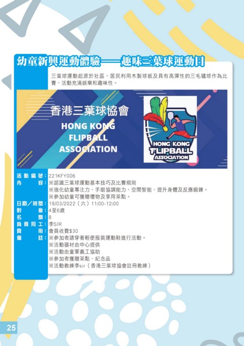 內 容 : ※認識三葉球運動基本技巧及比賽規則