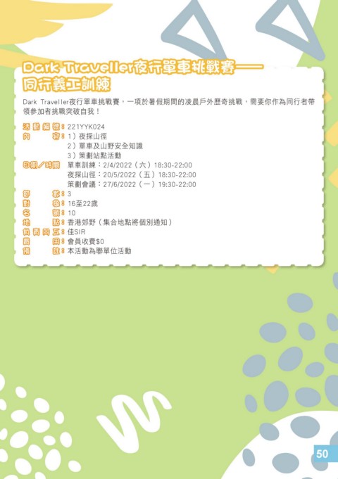 Dark Traveller夜行單車挑戰賽,一項於暑假期間的凌晨戶外歷奇挑戰,需要你作為同行者帶