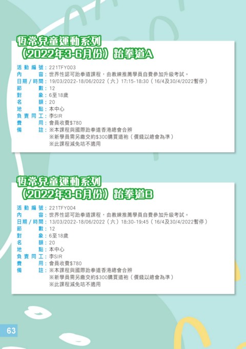 備 註 : ※本課程與國際跆拳道香港總會合辨