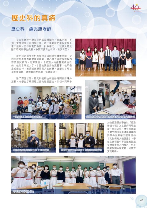 活動,令學生了解課程以外的社區歷史,如初中同學參