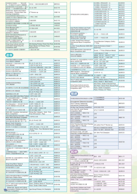 Music Talent Online Music Competition 大提琴組 金獎 3D譚栢淳 香港花式跳繩會—9歲女子組 亞軍 4B聶子晴
