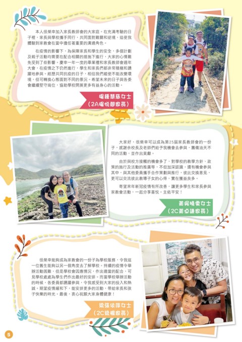本人很榮幸加入家長教師會的大家庭。在充滿考驗的日
