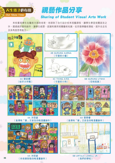 本校重視學生在藝術方面的培育,老師除了自行設計校本視藝課程,讓學生學習視覺語言之