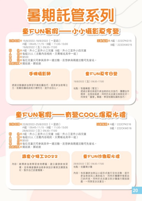 備 註:每位兒童只可參與其中一週活動,若想參與兩週活動可先留名。