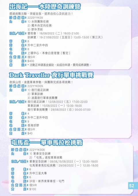 日期/時間: 營前會:16/08/2022(二)19:00-21:00