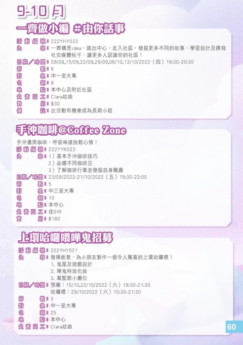 日期/時間: 預備:15/10,22/10/2022(六)19:30-21:30