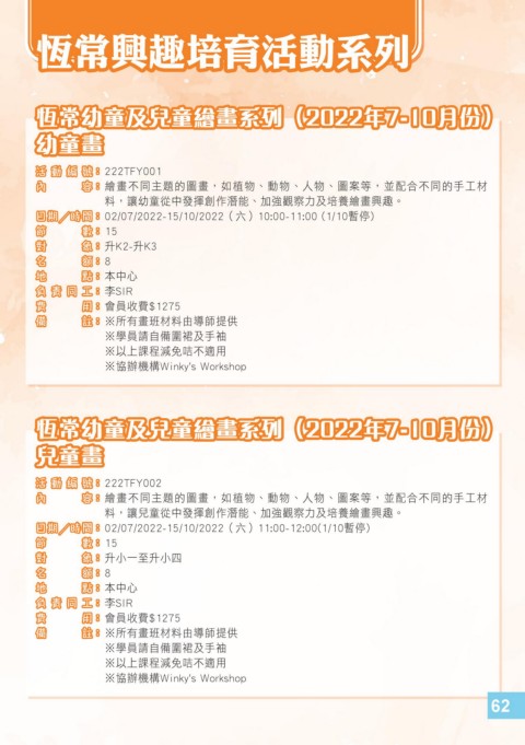 恆常幼童及兒童繪畫系列(2022年7-10月份)