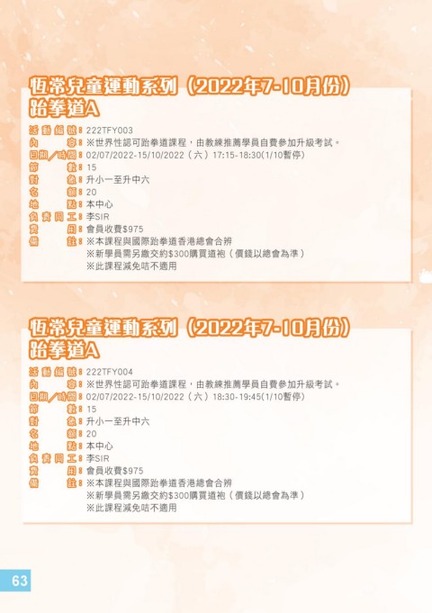 備 註 備 註 : : ※本課程與國際跆拳道香港總會合辨