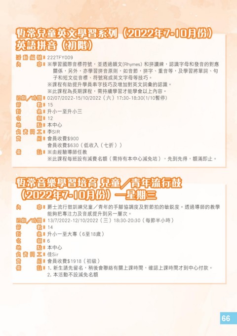 ※此課程每班設有減費名額(需持有本中心減免咭),先到先得,額滿即止。