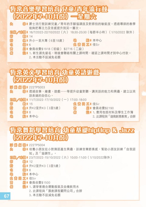 對 象 對 象 : : 升K2至升K3(3至5歲) 費 用 費 用 : : 會員收費$2190