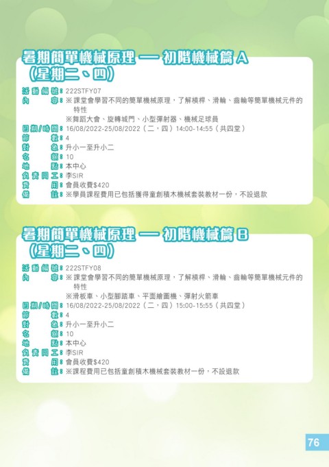 日期/時間: 16/08/2022-25/08/2022(二,四)14:00-14:55(共四堂)