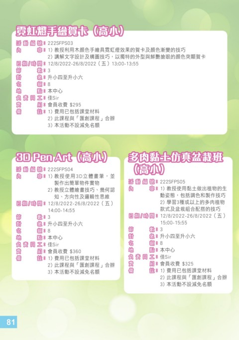 3) 本活動不設減免名額 備 註 註 備 : : 1) 費用已包括課堂材料