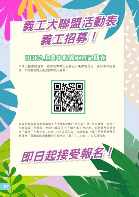 BGCA上環中心義工登記簡表