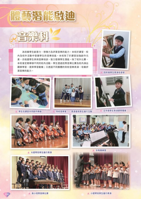 內及校外活動中發展學生的音樂技能。本校除了於課堂加強創作元