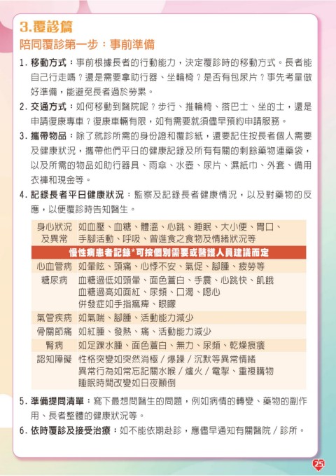 3. 攜帶物品︰除了就診所需的身份證和覆診紙,還要記住按長者個人需要