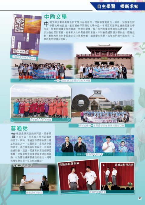 劇、實地考察及到中國歷史文化景點參觀,擴闊學生視野,加強他們對中國文化、文