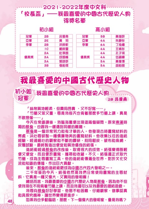 「校長盃」 — 我最喜愛的中國古代歷史人物