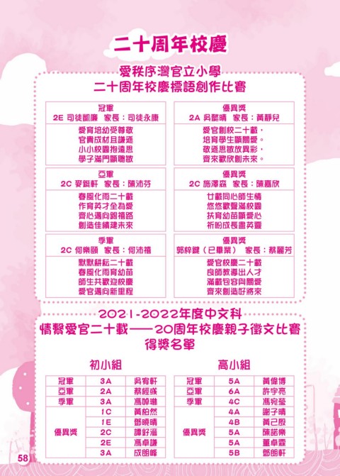 情繫愛官二十載—20周年校慶親子徵文比賽