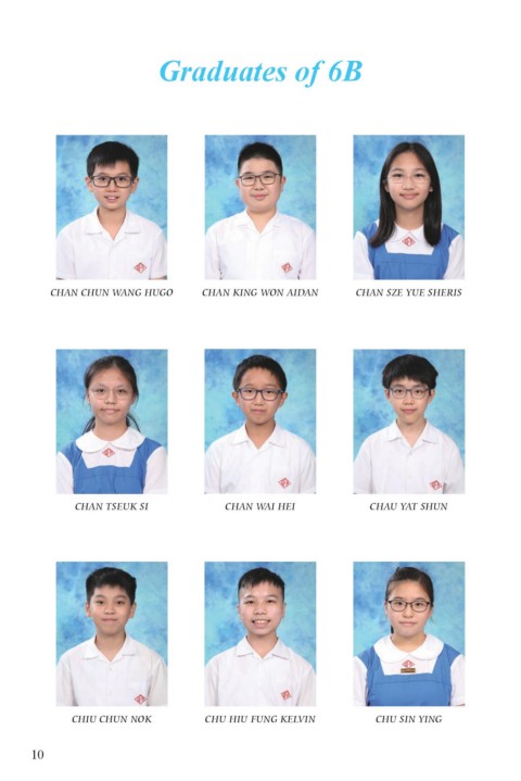 Graduates of 6B CHAN CHUN WANG HUGO CHAN KING WON AIDAN CHAN SZE YUE SHERIS CHAN TSEUK SI CHAN WAI HEI CHAU YAT SHUN CHIU CHUN NOK CHU HIU FUNG KELVIN CHU SIN YING 10