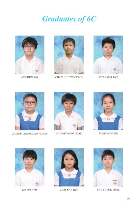 Graduates of 6C AU CHUN YIN CHAN HIU YIN CYRUS CHAN KAI TAO CHIANG CHEUK LAM AGNES CHIANG MING CHAK FUNG WAN SZE KO YUI HIM LAM KAR HEI LAU CHEUK LONG 15