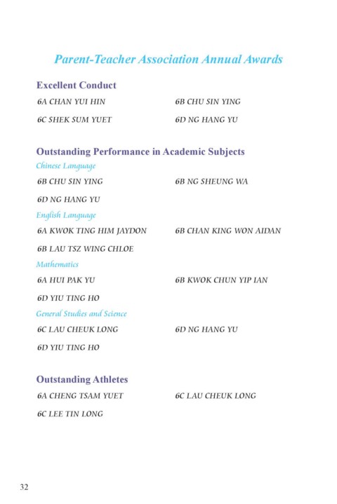 6A CHENG TSAM YUET 6C LAU CHEUK LONG