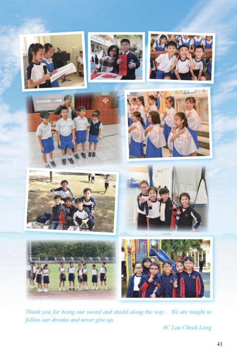 Thank you for being our sword and shield along the way… We are taught to follow our dreams and never give up. 6C Lau Cheuk Long 41