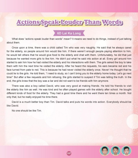 David is a much better boy than Tim. David talks and puts his words into action. Everybody should be