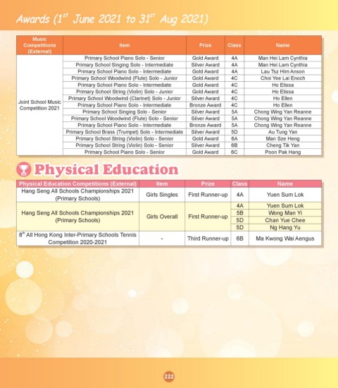 Physical Education Competitions (External) Item Prize Class Name