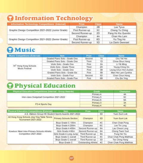 Physical Education Competitions (Internal - Group Awards)          Grade                 Champion