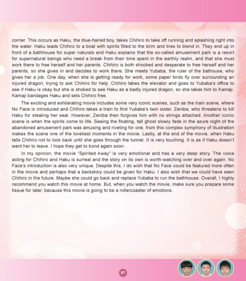 In my opinion, the movie “Spirited Away” is very emotional and has a very deep story. The voice
