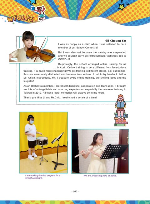 As an Orchestra member, I learnt self-discipline, cooperation and team spirit. It brought