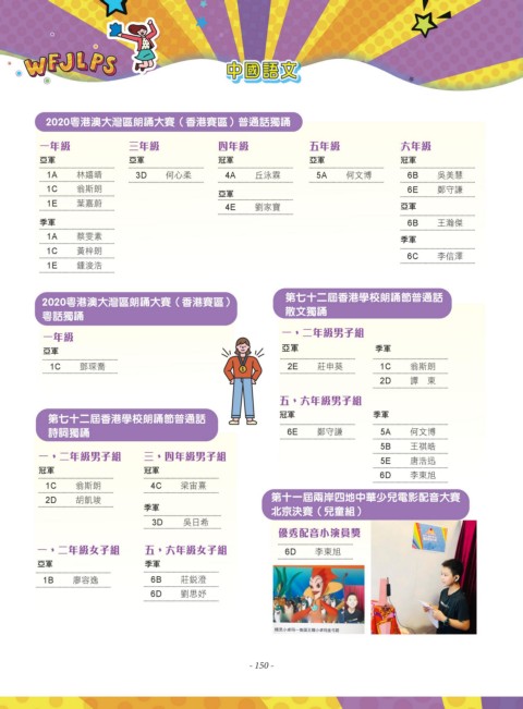 1A 林嬉晴 3D 何心柔 4A 丘泳霖 5A 何文博 6B 吳美慧