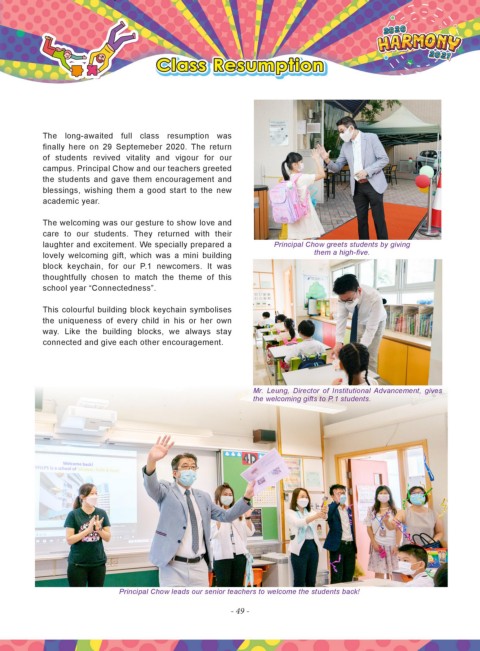 laughter and excitement. We specially prepared a Principal Chow greets students by giving
