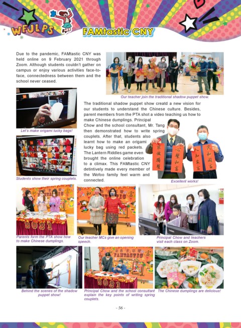 to make Chinese dumplings. speech. visit each class on Zoom.