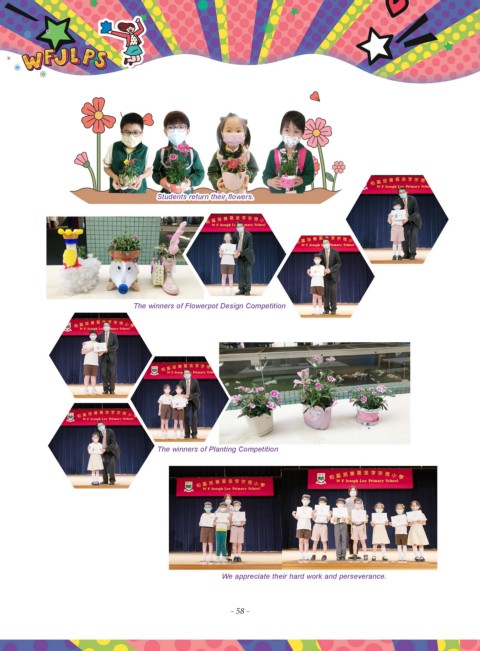 Students return their flowers. Students return their flowers. The winners of Flowerpot Design Competition The winners of Planting Competition We appreciate their hard work and perseverance. - 58 -