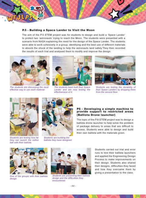 The aim of the P.5 STEM project was for students to design and build a ‘Space Lander’