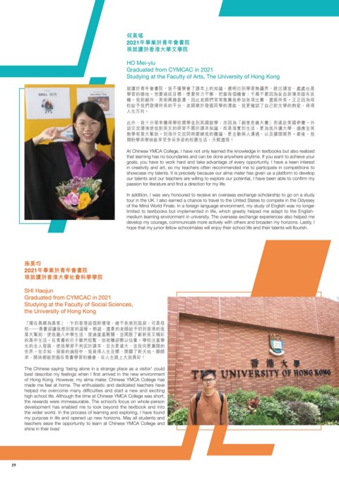 of Hong Kong. However, my alma mater, Chinese YMCA College has