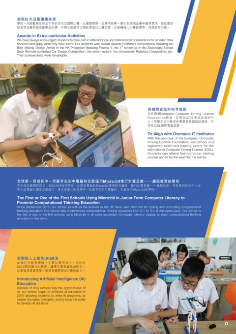 thinking education. Our school also implemented computational thinking education from S.1 to S.3 at the same pace. Our school is