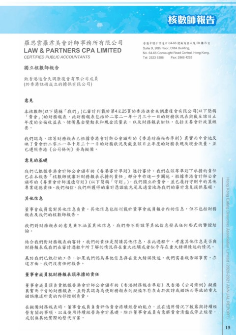核數師報告 Hong Kong Eating Disorders Association Limited (2020-2021 ANNUAL REPORT) 15