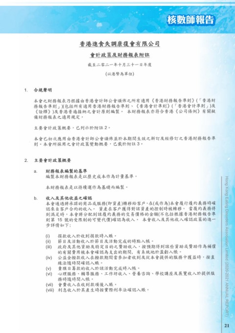 核數師報告 Hong Kong Eating Disorders Association Limited (2020-2021 ANNUAL REPORT) 21