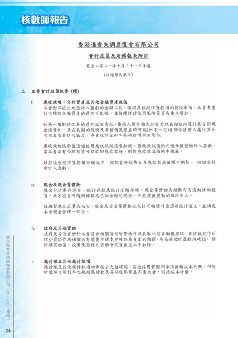 核數師報告 香港進食失調康復會有限公司 ( 2020-2021 年報) 24