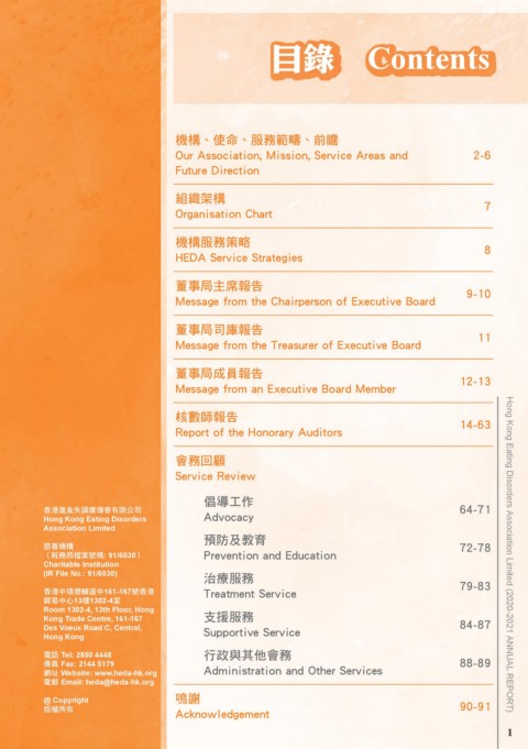 (稅務局檔案號碼: 91/6030) Prevention and Education Hong Kong Eating Disorders Association Limited (2020-2021 ANNUAL REPORT)
